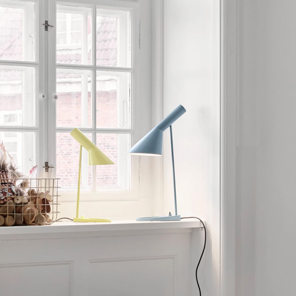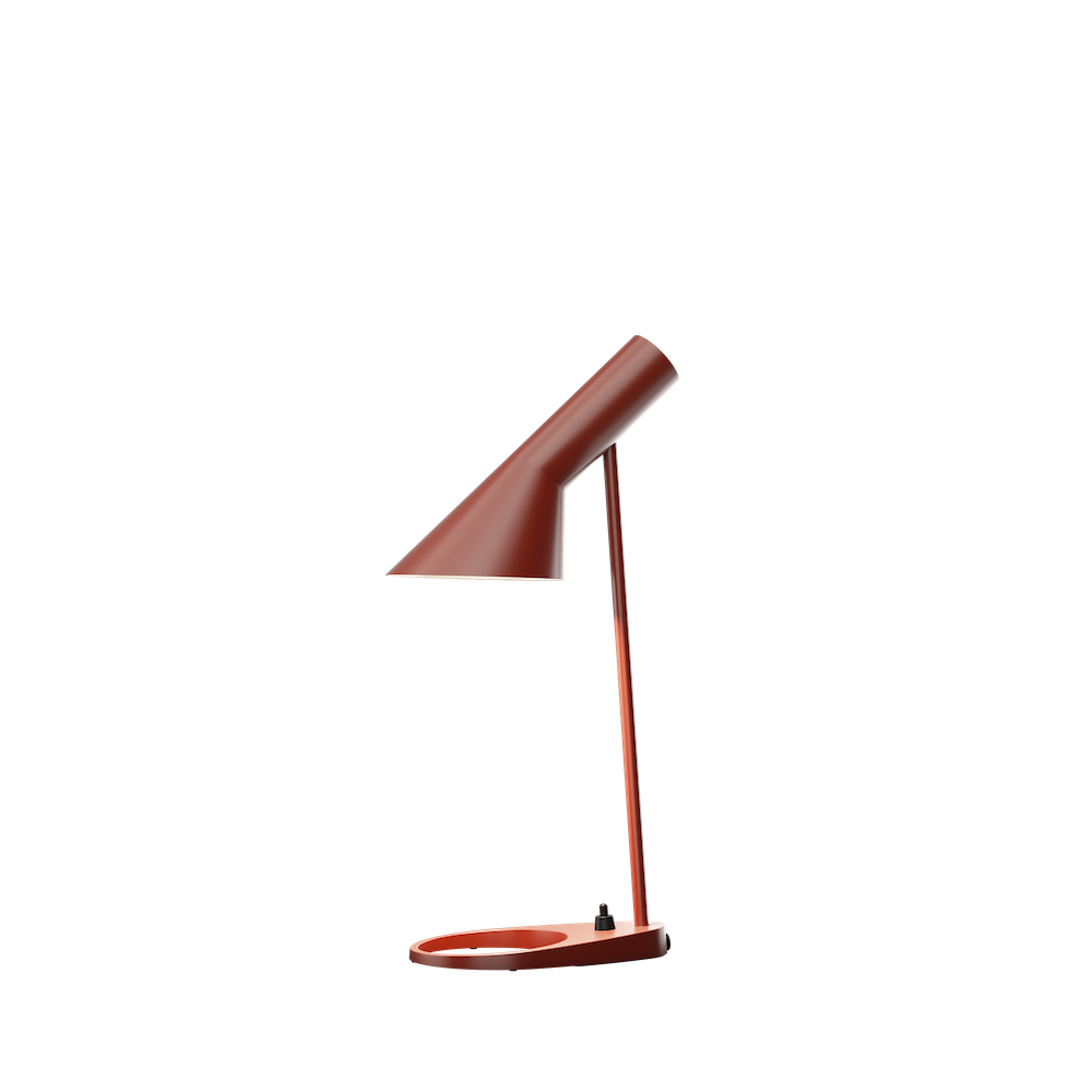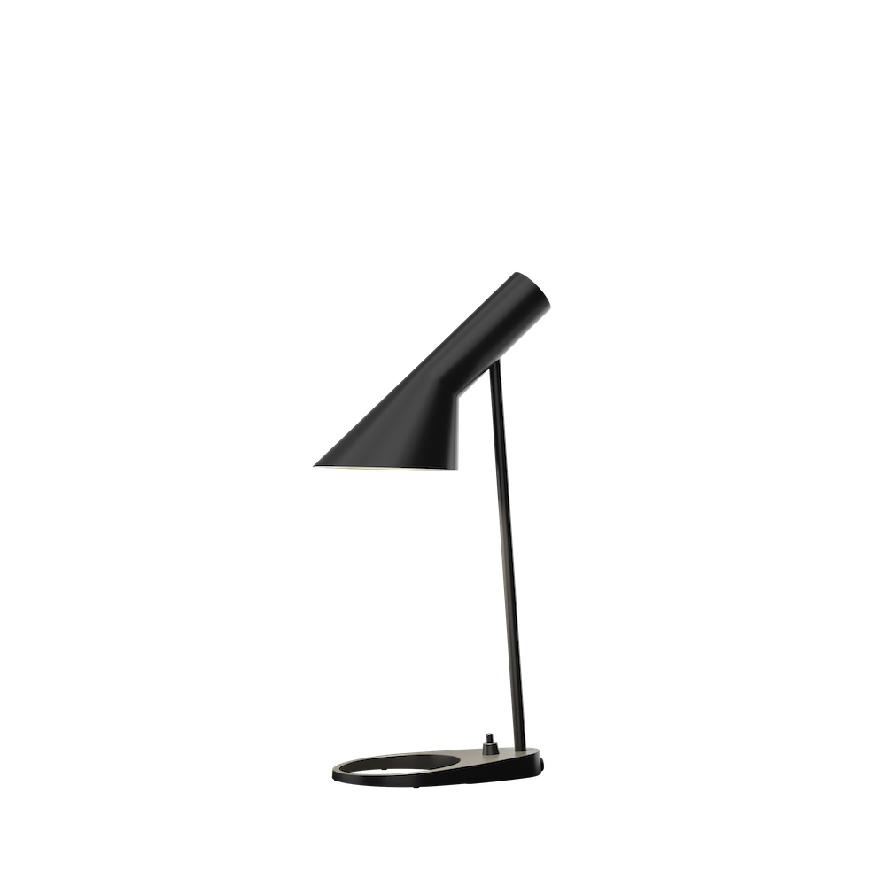 AJ bordslampa i ett nytt mindre format – mini – från danska Louis Poulsen. AJ-lampan ritades 1960 till Radisson Blu Royal Hotel, tidigare SAS Royal Hotel, i Köpenhamn och var en del av det totala designkonceptet för hotellet. Flera av produkterna som togs fram är idag designikoner och inom belysning har AJ-lamporna blivit världskända.