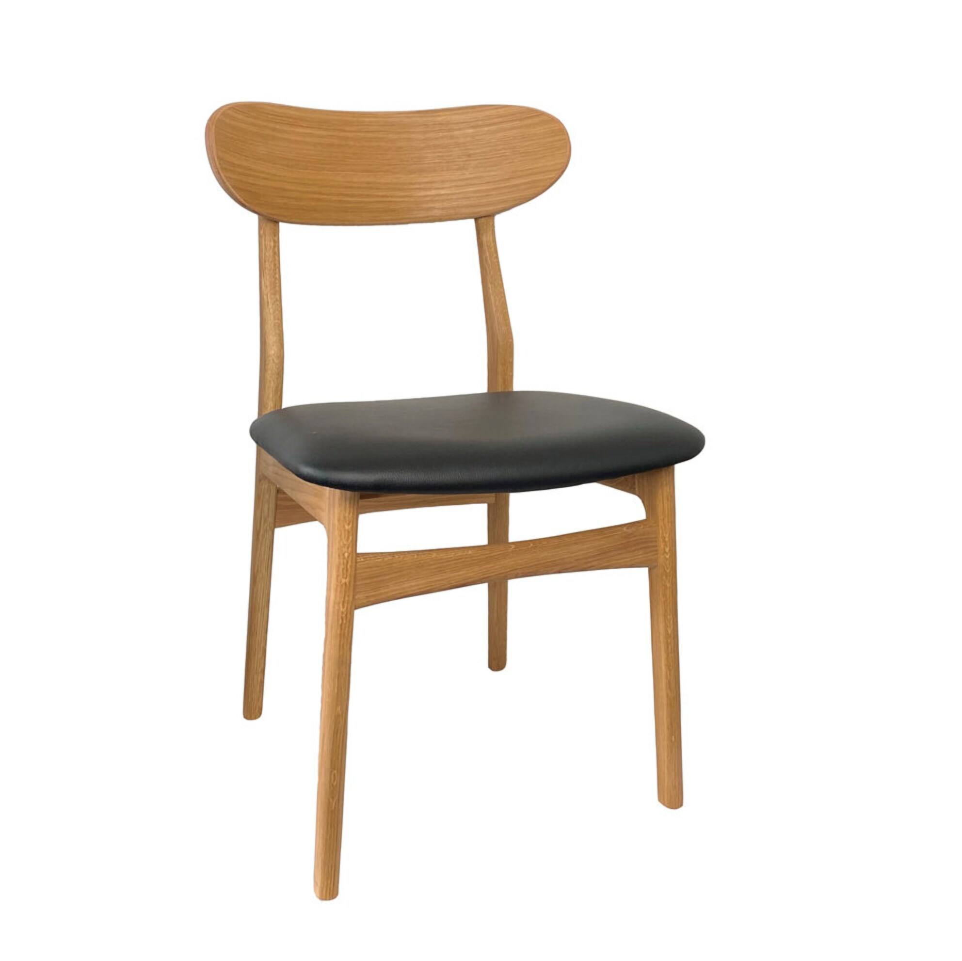 Den omsorgsfullt formgivna ryggen ger naturligt stöd, medan sitsen erbjuder en bekväm upplevelse oavsett om du väljer läder i svart eller cognac, eller ett varmt beige tyg i modellen Diosa. Stommen finns i fyra varianter: rökoljad, vitoljad, oljad eller svartbetsad massiv ek – vilket gör det enkelt att matcha stolen med olika matbord och interiörstilar.