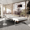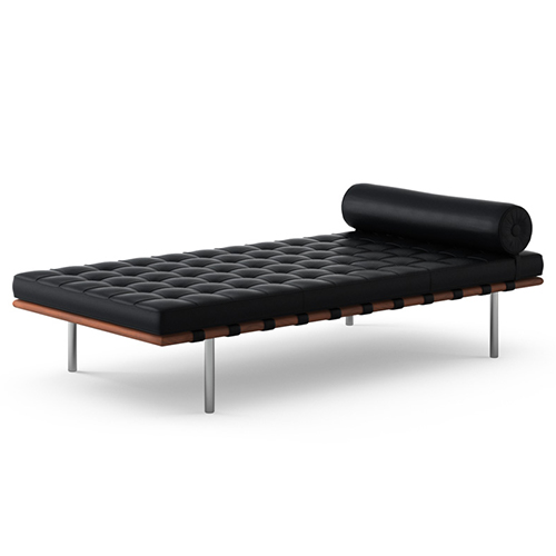 Barcelona Couch relax eller dagbädd från tyska varumärket Knoll är formgiven av Ludwig Mies van der Rohe mellan åren 1929-1931. Barcelona serien kan nog vara en av de mest ikoniska möbler inom modern formgivning med sin stilrena och tidlösa formgivning. Dynan är tillverkad av totalt 72 stycken paneler i kohud som behandlats och skurits ut för hand. Ramen är av förkromat stål som polerats till en spegelblank yta för hand. Sits är stoppad med skum för yttersta bekvämlighet. För att skapa ett komplett vardagsrum/lounge finns Barcelona även som fotpall, soffbord samt fåtölj.