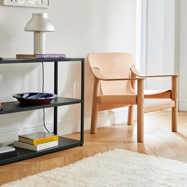 Bernard fåtölj från danska varumärket HAY, formgiven av Shane Schneck. Bernard Chair finns att få klädd i råare canvas alternativt vackert läder i ett antal olika färger. Stommen är av bok eller ek. Bernard är en hyllning till den danska möbelkonsten och har fina kontraster mellan de olika materialvalen.