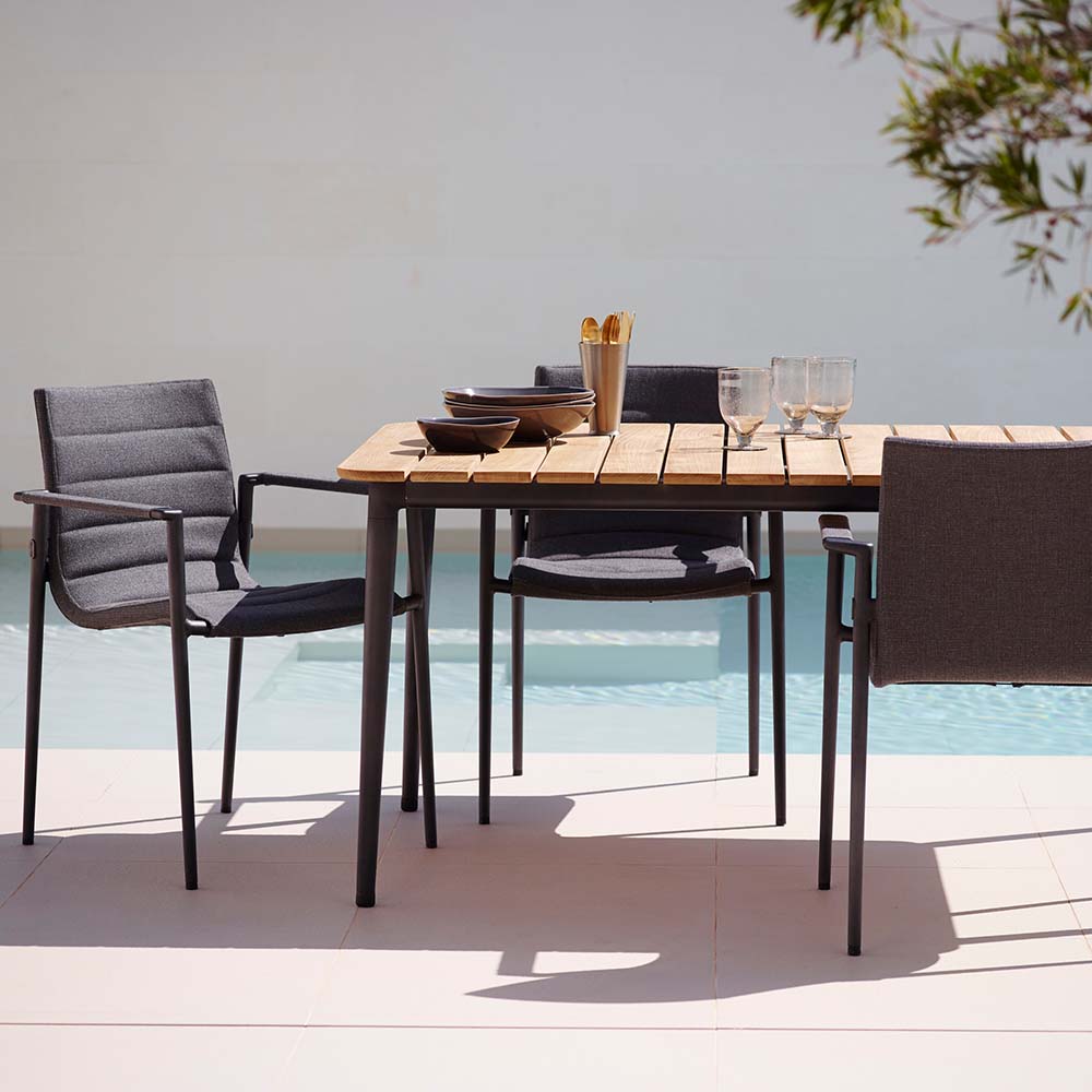 Core är en bekväm stol för utomhusbruk formgiven av designduon Foersom & Hiort-Lorenzen för danska Cane-line. Designen gör det möjligt att använda stolen utomhus året runt tack vare den vävda kombinationen av Cane-line AirTouch® och QuickDry® Foam med Airflow. Under sitsen finns extra dränering för att stolen ska torka snabbt efter regn. Vi rekommenderar att man lutar stolen något för att snabba på dräneringsprocessen eller slår på sätet några gånger med handen för att få ut fukten ur stoppningen. Under vinterhalvåret rekommenderas att möblerna förvaras i förråd eller under ett skydd.