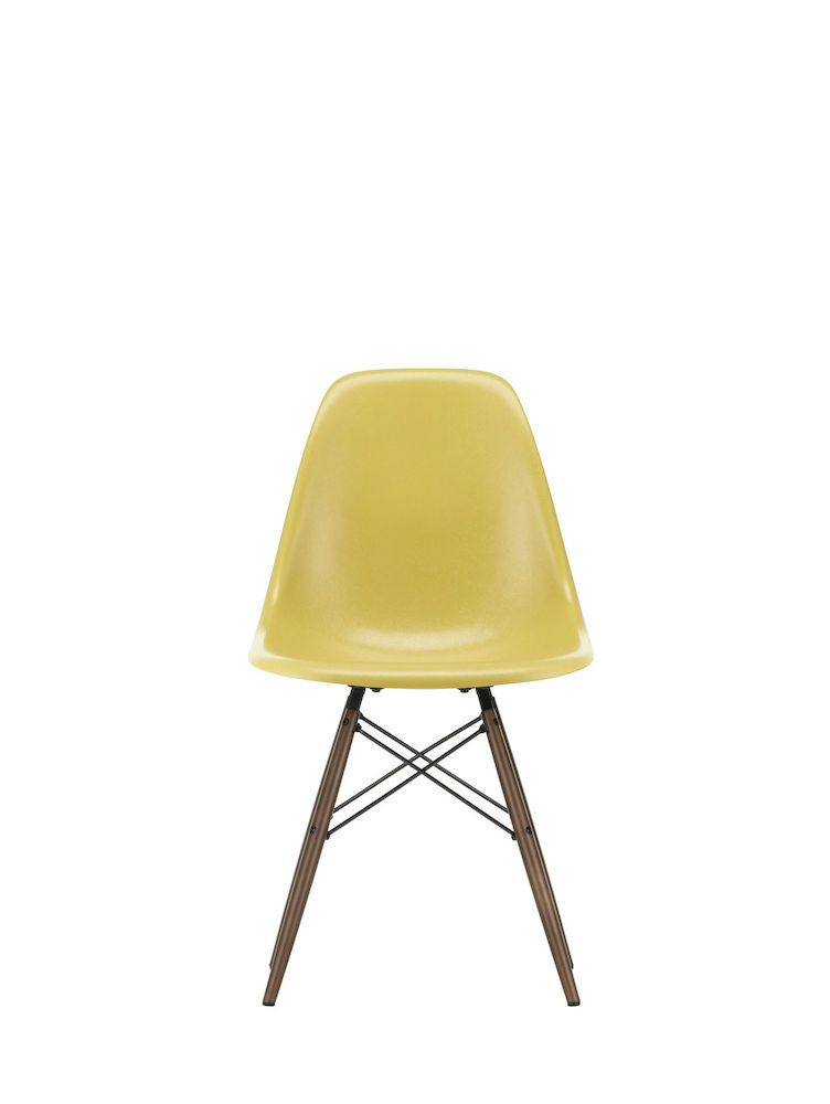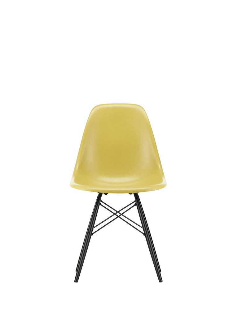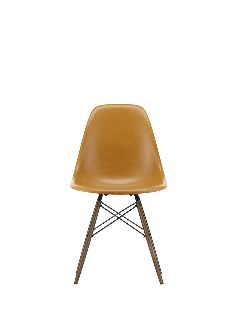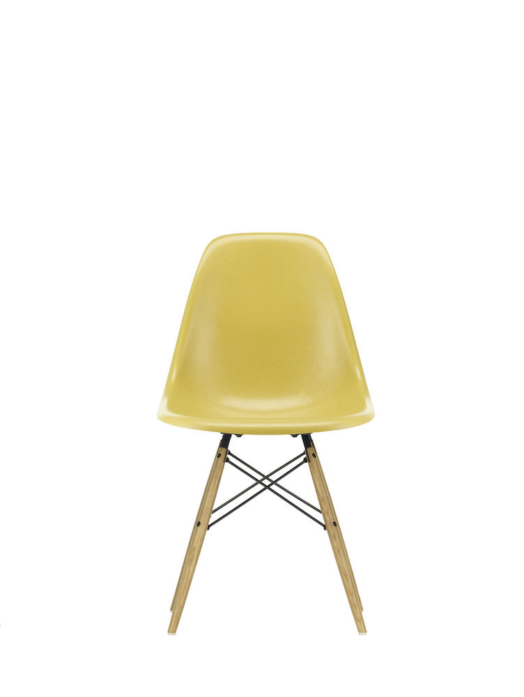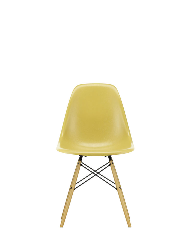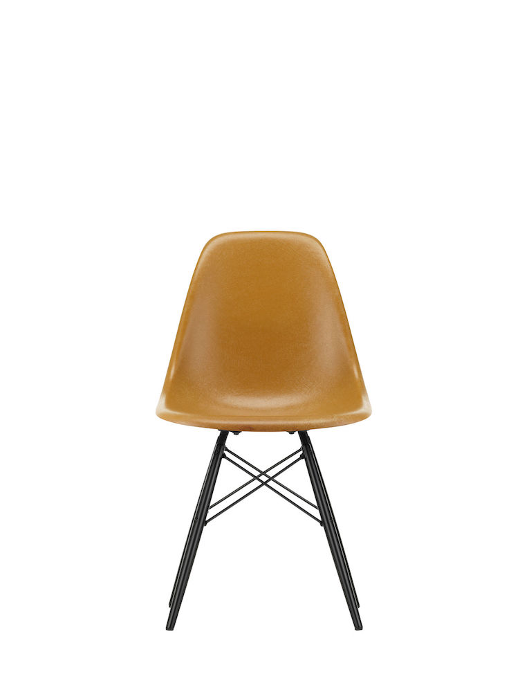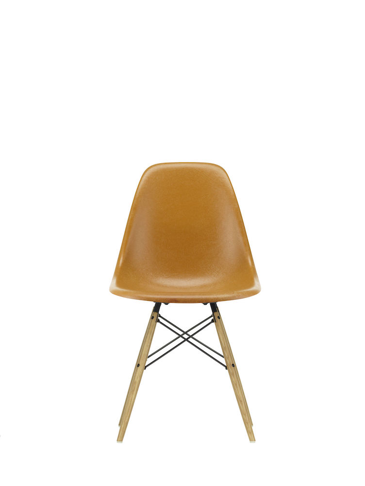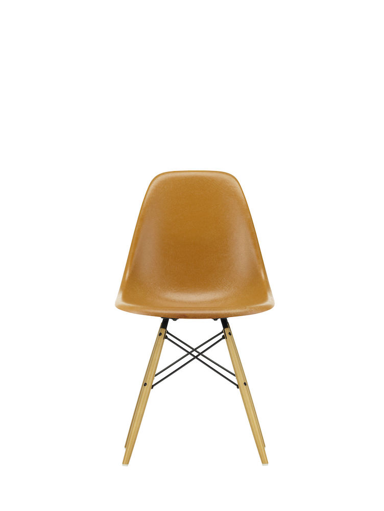 Eames Fiberglass Chair DSW ochre, formgiven av Ray och Charles Eames. Stolen från Vitra är originalversionen och har nu återlanserats. Eames fiberglass chair lanserades första gången på 1950-talet och har blivit en designikon världen över. Dessvärre lades produktionen ner då tillverkningsprocessen inte höll måttet. Idag, 20 år senare, har dock dagens teknik och moderna metoder för produktion möjliggjort för en säker och mer miljövänlig tillverkning.