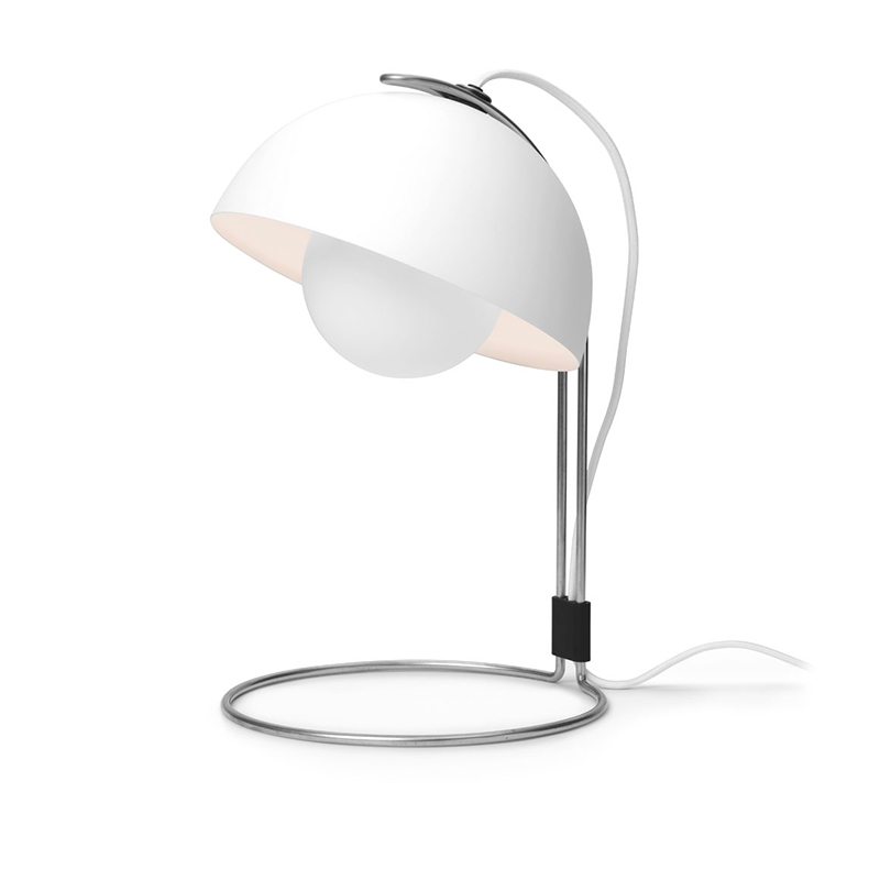 Flowerpot VP4 bordslampa – en designikon som alltid känns lika aktuell. Flowerpot bordslampan VP4 är formgiven av Verner Panton år 1969, mitt under dåtidens Flower-Power rörelse, vilket gett lampan dess namn. Flowerpot VP4 finns i flera fina färger men även som pendel Flowerpot VP2 taklampa och Flowerpot VP1 pendel.