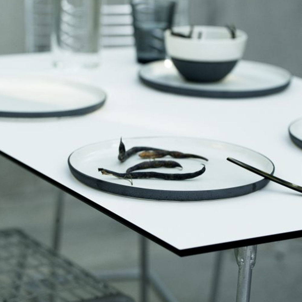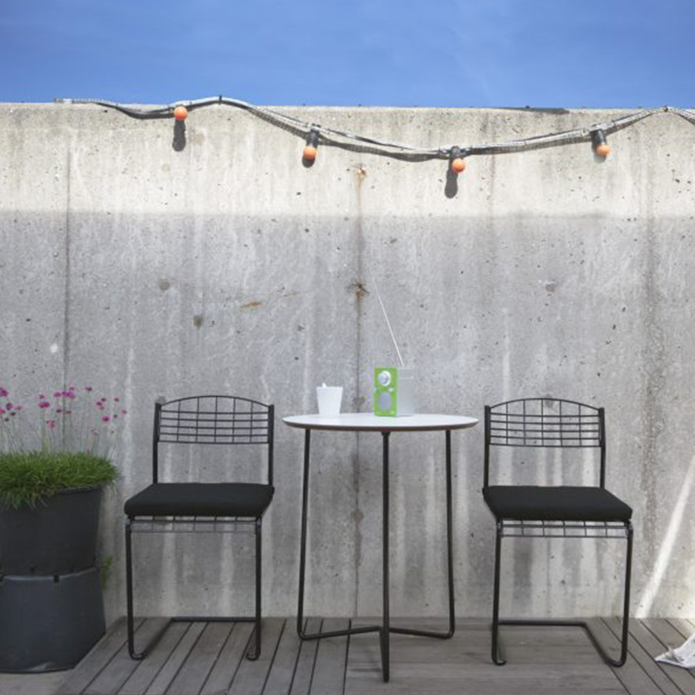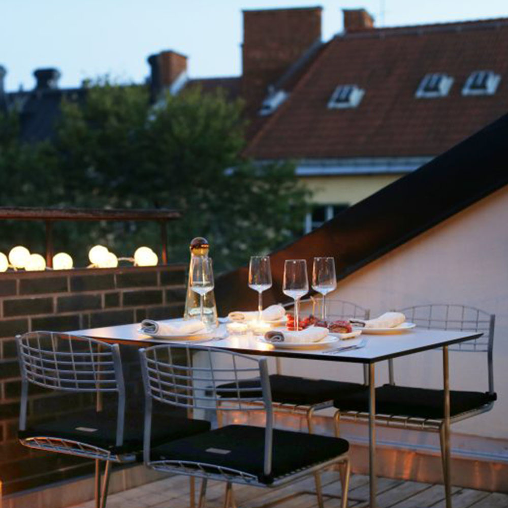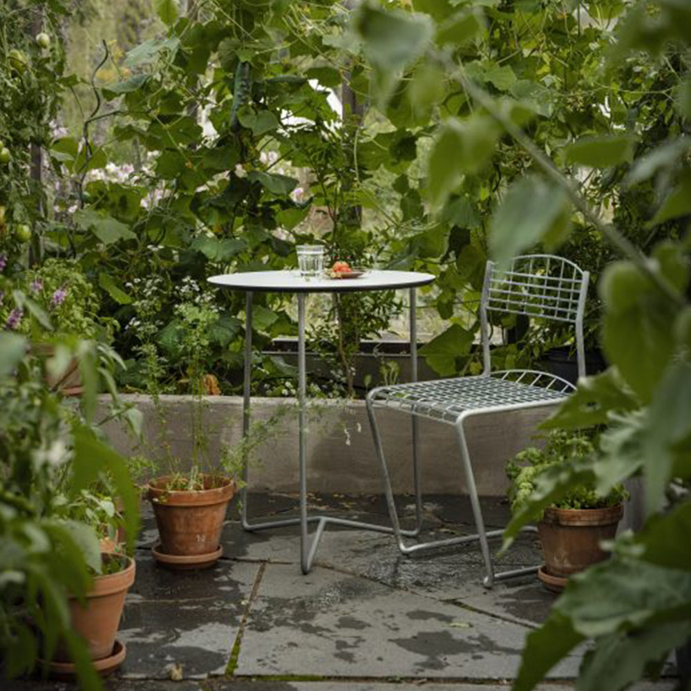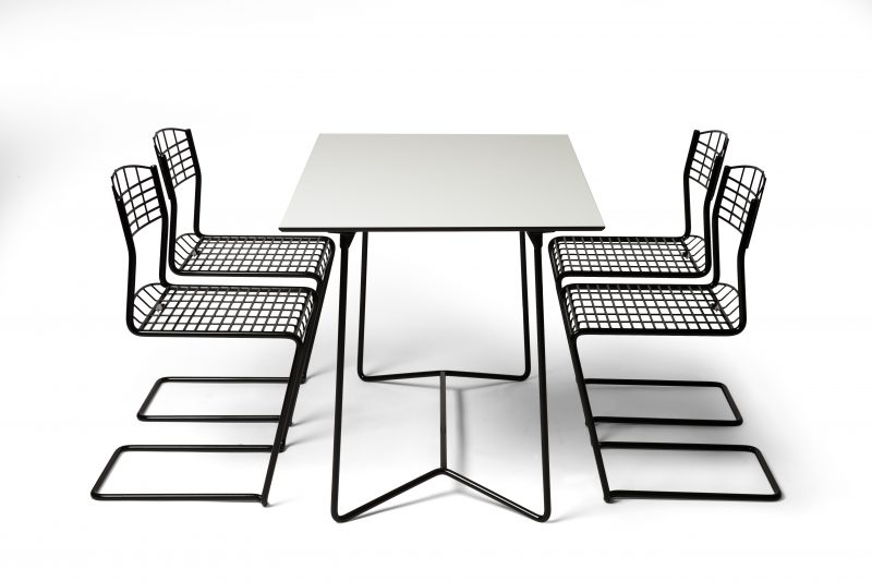 High-Tech utegrupp i svart från Grythyttan Stålmöbler är formgiven av Nisse Strinning 1984. Gruppen finns i två färger på stativet och har den sköna Grythyttesvikten du ibland behöver för att koppla av. Grythyttans High Tech möbler är tillverkade i hållbara material och håller i många generationer. Många vill även använda den inomhus och till det finns då golvskydd att köpa till i vitt eller svart. Bordsskivan är tillverkad i ett vitt kompositmaterial.