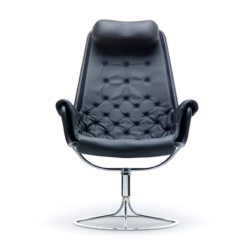 Jetson 69 fåtölj helklädd är en ikon inom svensk möbeldesign. Bruno Mathsson arbetade i tre år för att färdigställa den futuristiska fåtöljen. 1969 presenterades resultatet i en utställning på Nordiska Galleriet i Stockholm, och succén var ett faktum. Fåtöljen blev en milstolpe i Mathssons produktionsprogram och den har fått många efterföljare. Jetson Fåtölj 69 har en grunduppbyggnad i rör med ett förkromat eller svartlackerat stativ med rotokonstruktion och minne. Jetson 69 roterar alltså alltid tillbaka till sin ursprungliga position. Den skålformade sitsen med den högt ergonomiskt utformade ryggen ger en fantastisk komfort, nackkudden som du får till ger även sittupplevelsen ännu ett plus poäng.