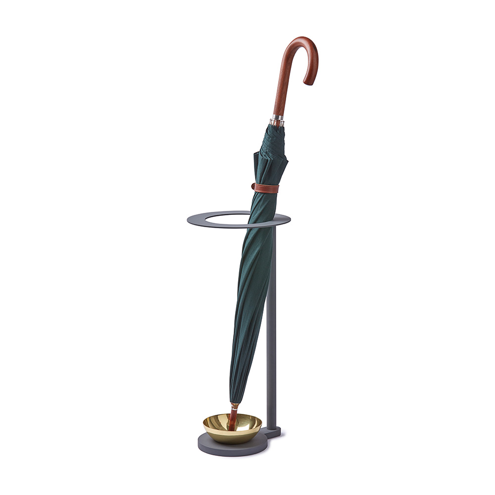 Monokel paraplyställ från Klong är ett perfekt matchande komplement till klädhängaren med samma namn. Den har en skål i mässing och ram i rostfritt stål.