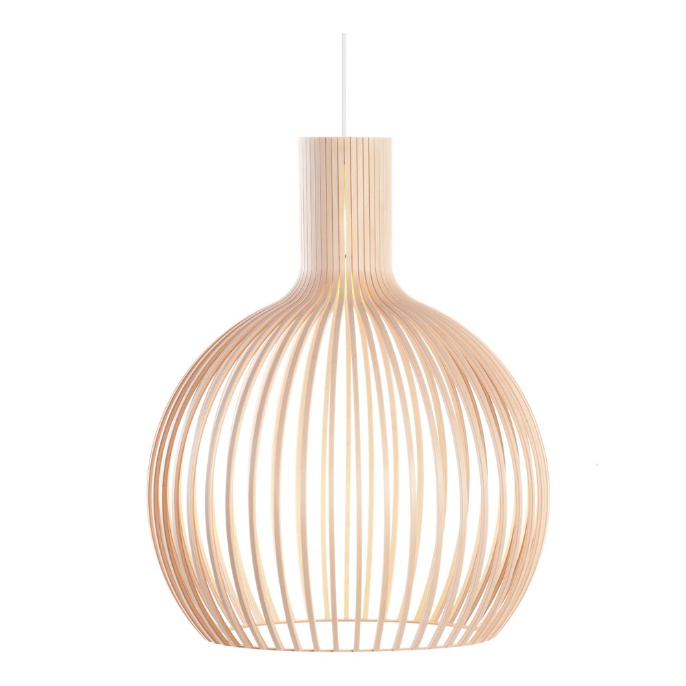 Octo 4240 taklampa från Secto Design. Secto Design är en finsk belysningstillverkare som specialiserar sig på designade trälampor. Secto Design lampskärmar är gjorda av finsk björk och handtillverkade av mycket skickliga hantverkare. Inredningsarkitekten Seppo Kohos formgivning har en klar och enkel skandinavisk känsla. Björkträ ger ett mjukt ljus som skapar en härlig atmosfär och känsla. Octo lampan finns även i en mindre variant Octo 4241 som passar över det lite mindre matbordet eller i par om två över köksön eller det större köksbordet.