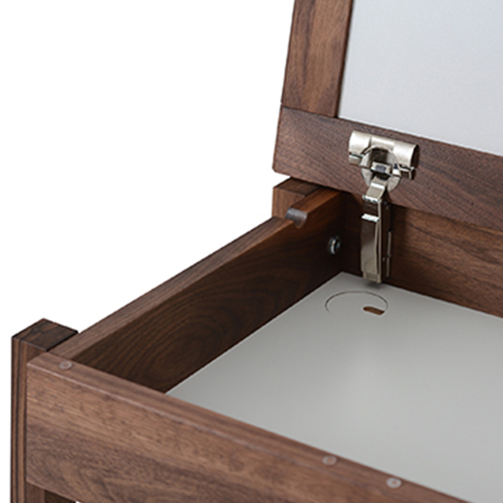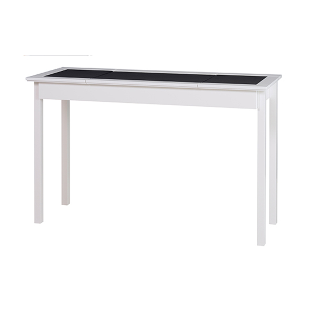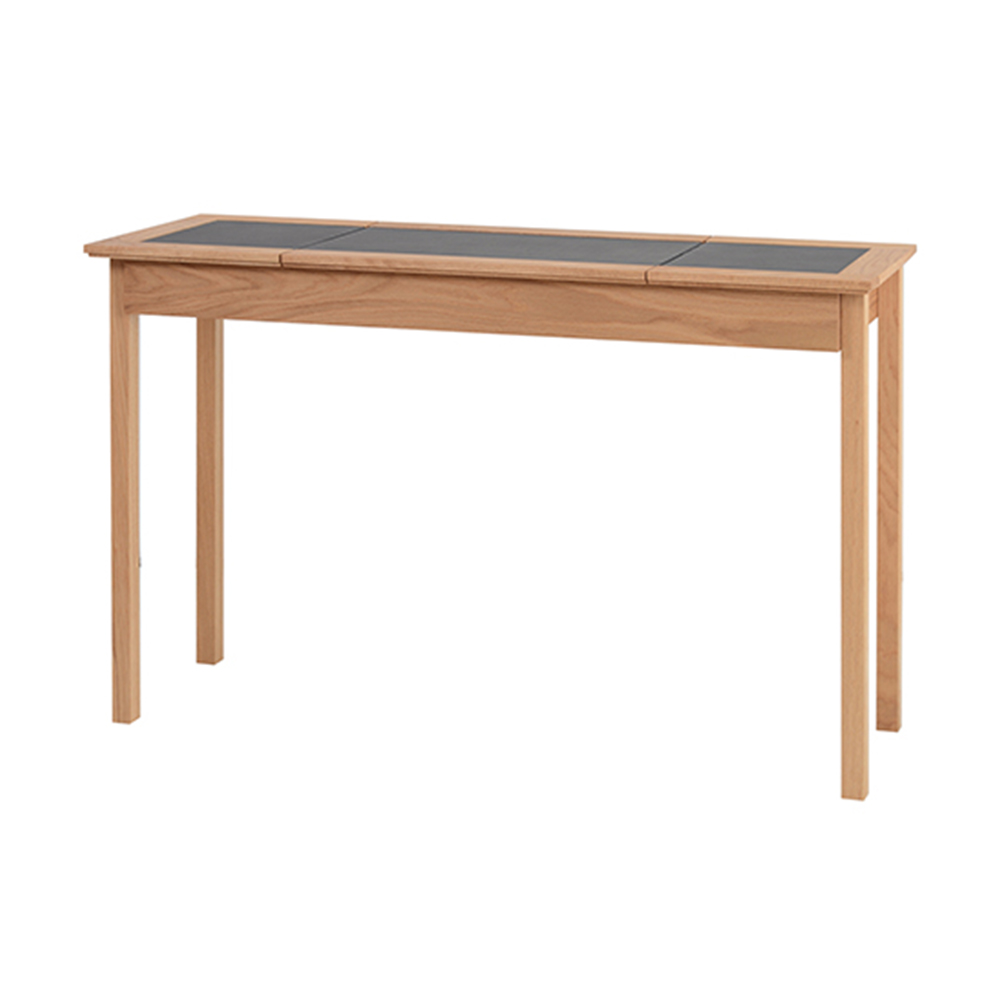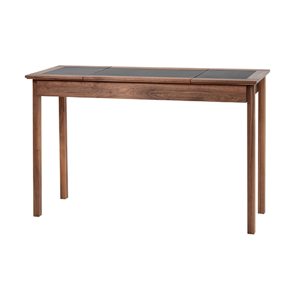 I botten och på sidan av skrivbordet finns öppningar som gör det lätt att dra in sladdar. Skrivbordsytan är klädd med svenskt läder som finns i flera färger för att ge en gedigen och bekväm arbetsyta.
