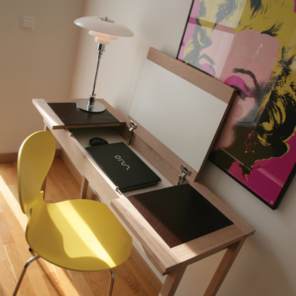 Olof Big är det lite större skrivbordet med den stora förvaringen. Locket i bordsskivan är öppningsbart och för tankarna tillbaka till den klassiska skolbänken. Under skrivbordsytan, som är indelad i tre sektioner, finns förvaringsutrymmen med plats för laptop, post, dokument, pennor och mycket annat. Olof finns även i en mindre något nättare storlek Olof skrivbord.