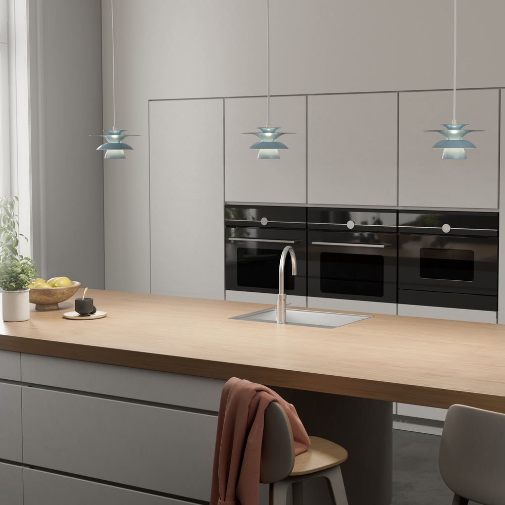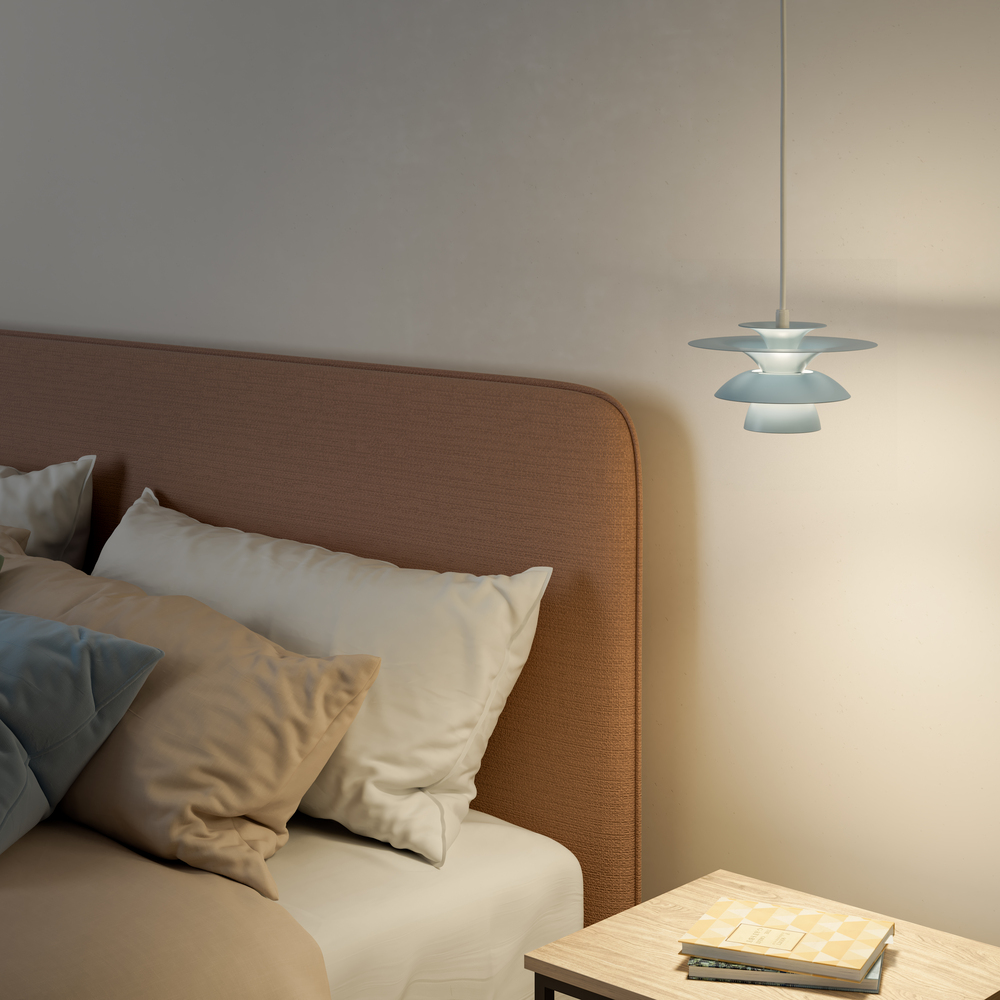 Picasso familjen består av pendlar, bords- och golvlampa. Pendeln har sobra ljusa färger som var lätta att matcha med klassiskt nordisk inredning. Färgerna gifter sig mycket behagligt med naturnära inredningsstilar, men även mer grafiska inredningsstilar, där man vill ha en lagom framtoning av inredningsdetaljerna. Picasso´s metallskärmar i olika storlekar ger ett vackert ljus. Ljuskälla ingår ej. Designer Joakim Fihn. Tillverkad i Varberg, Sverige.