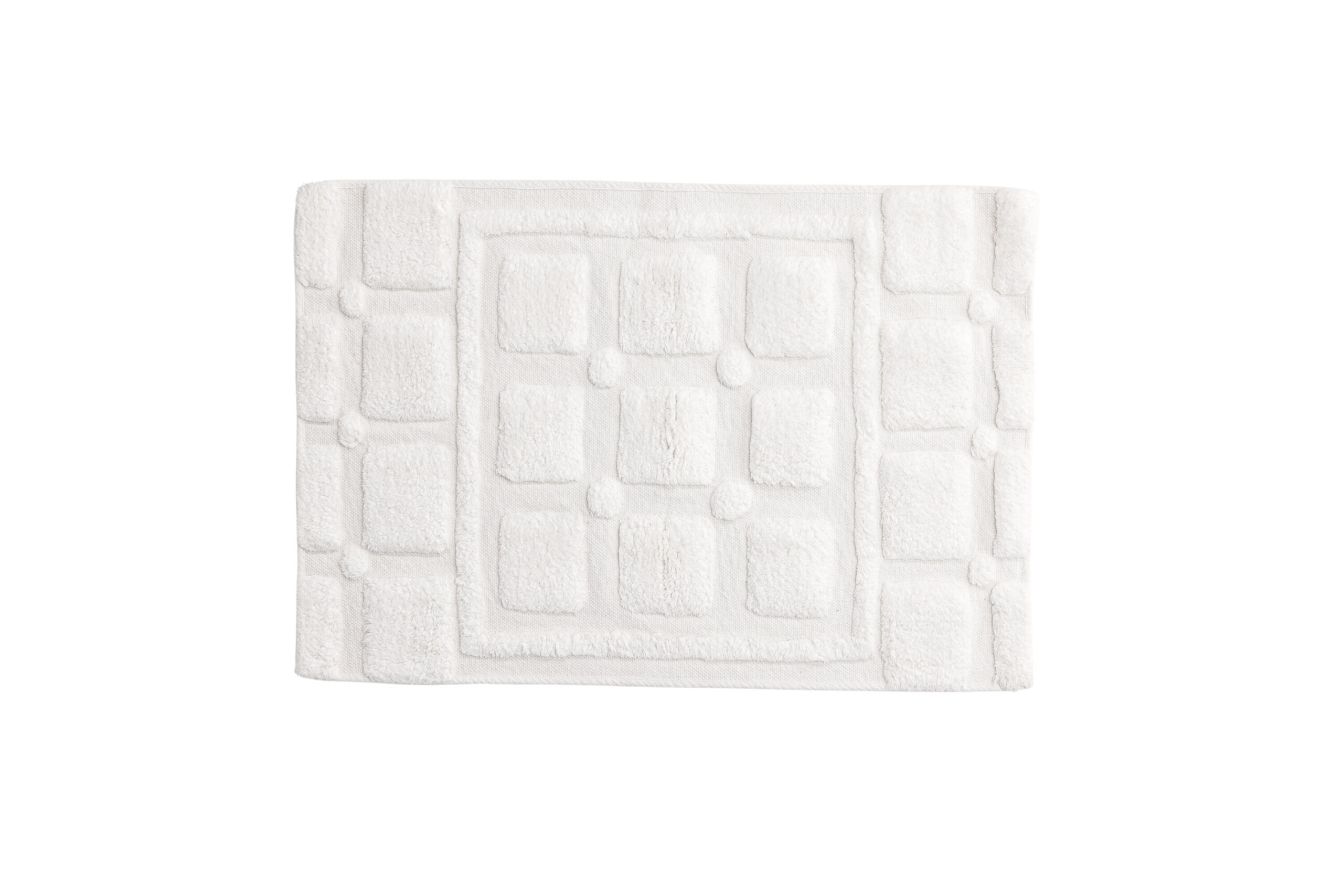 Putte är en rektangulär Badrumsmatta tillverkad av mjuk bomull. Med sina mått på 60×90 cm passar denna mönstrade matta perfekt i ditt badrum. Den vita färgen ger en skandinavisk touch och den mjuka och gosiga ytan kommer att ge en extra känsla av komfort.