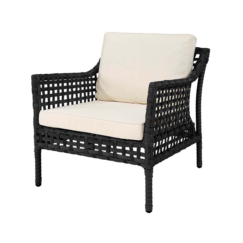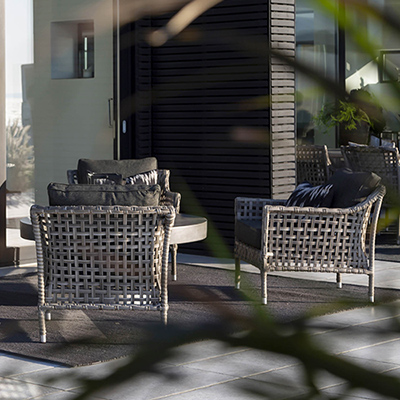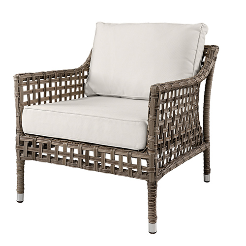 Santa Monica fåtölj är tillverkad i hållbar aluminium och en väderbeständig konstrotting i en grå nyans med mjuka dynor i en matchande vit färg. Dynorna är i 100% polyester och är avtagbara för enkel rengöring. Det finns flertalet tyger att välja mellan, kontakta oss gärna för mer information.