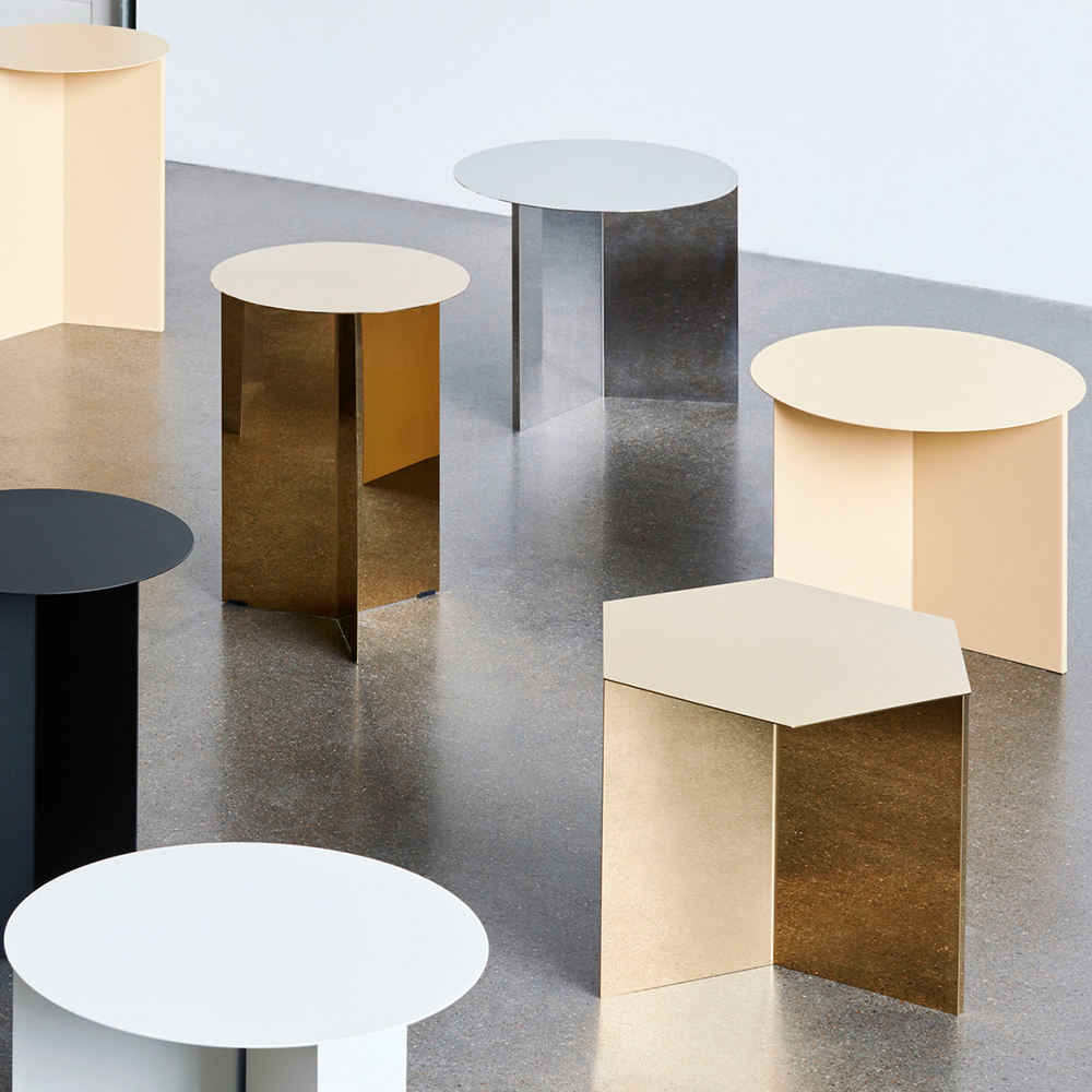 Slit table i rund formad bordsskiva från danska varumärket HAY. Slit är tillverkat i vacker blankt mässing eller pulverlackerat stål och blir som ett smycke i ditt hem. Placera som sängbord, i hallen, invid fåtöljen eller soffan alternativen är många. Slit bordsserie finns även i andra storlekar och former samt i flertalet fina färger.