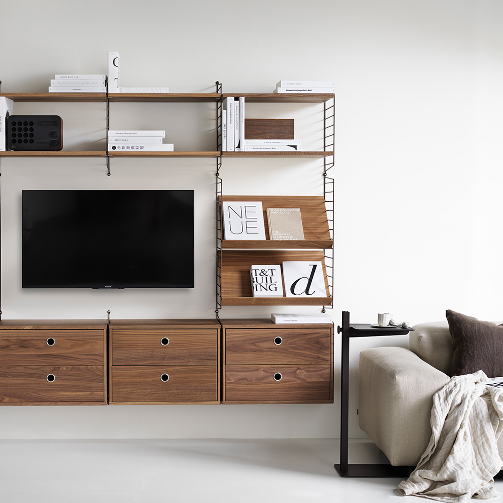 String hyllplan 58×20 cm säljs i 3-pack. Sedan String lanserades år 1949 har hyllsystemets enkla och modernistiska formgivning älskats av unga som gamla. Vissa ting blir så starkt förknippade med en tid att de faktiskt blir tidlösa. Så kan man kort sammanfatta Nisse och Kajsa Strinnings bidrag till den skandinaviska designhistorien – Stringhyllan.