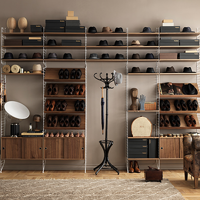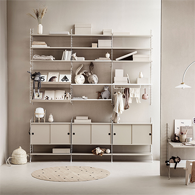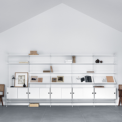 För ett komplett system se String Väggavel 2-pack 75×30 cm, String Väggavel 2-pack 75×20 cm, String Golvgavel 2-pack 200×30 cm, String Hyllplan 3-pack 78×20 cm, String Hyllplan 3-pack 58×30 cm, String Hyllplan 3-pack 58×20 cm, String Tidskriftshylla, String Lådhurts, String Skåp Skjutdörr samt String Arbetsskiva.