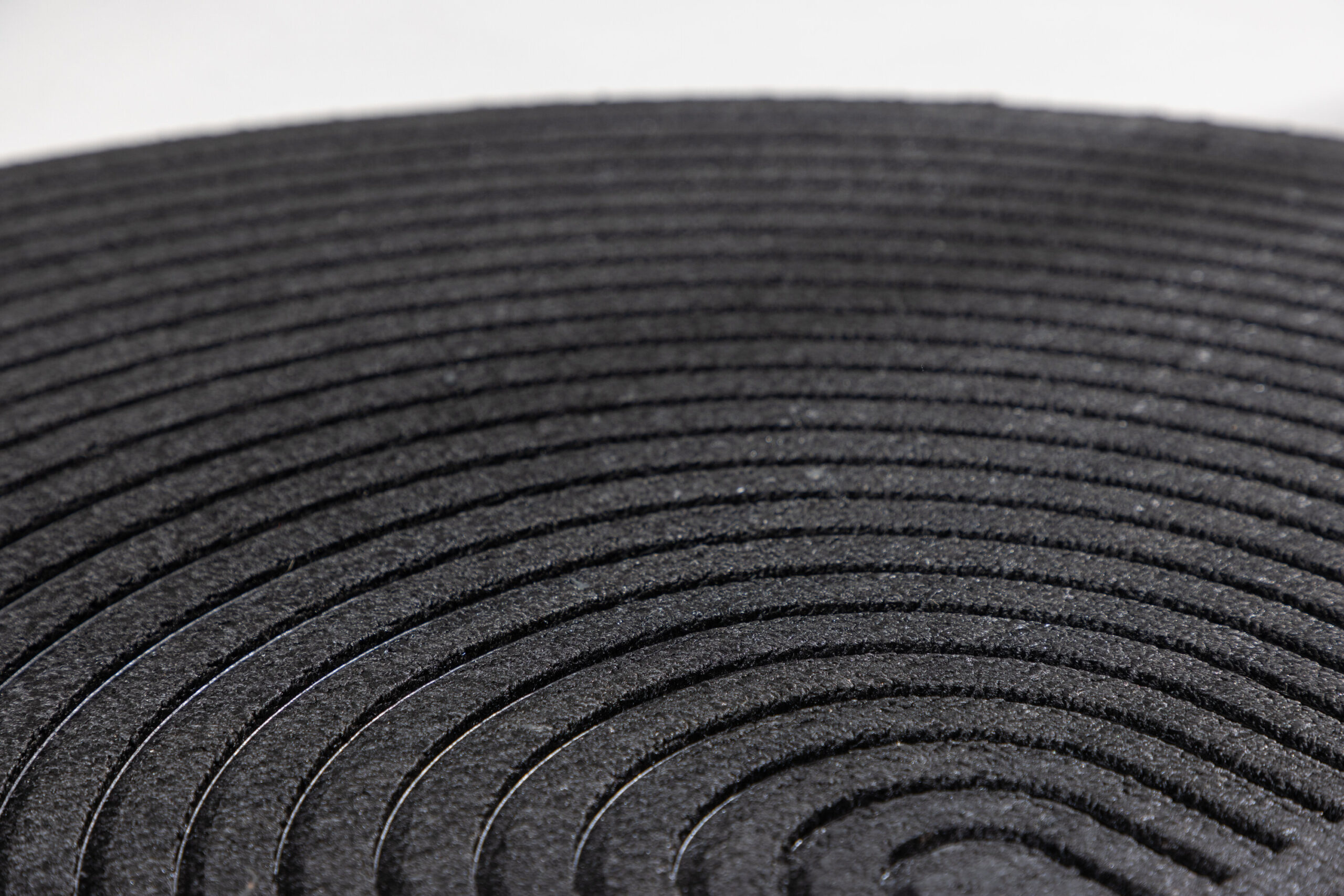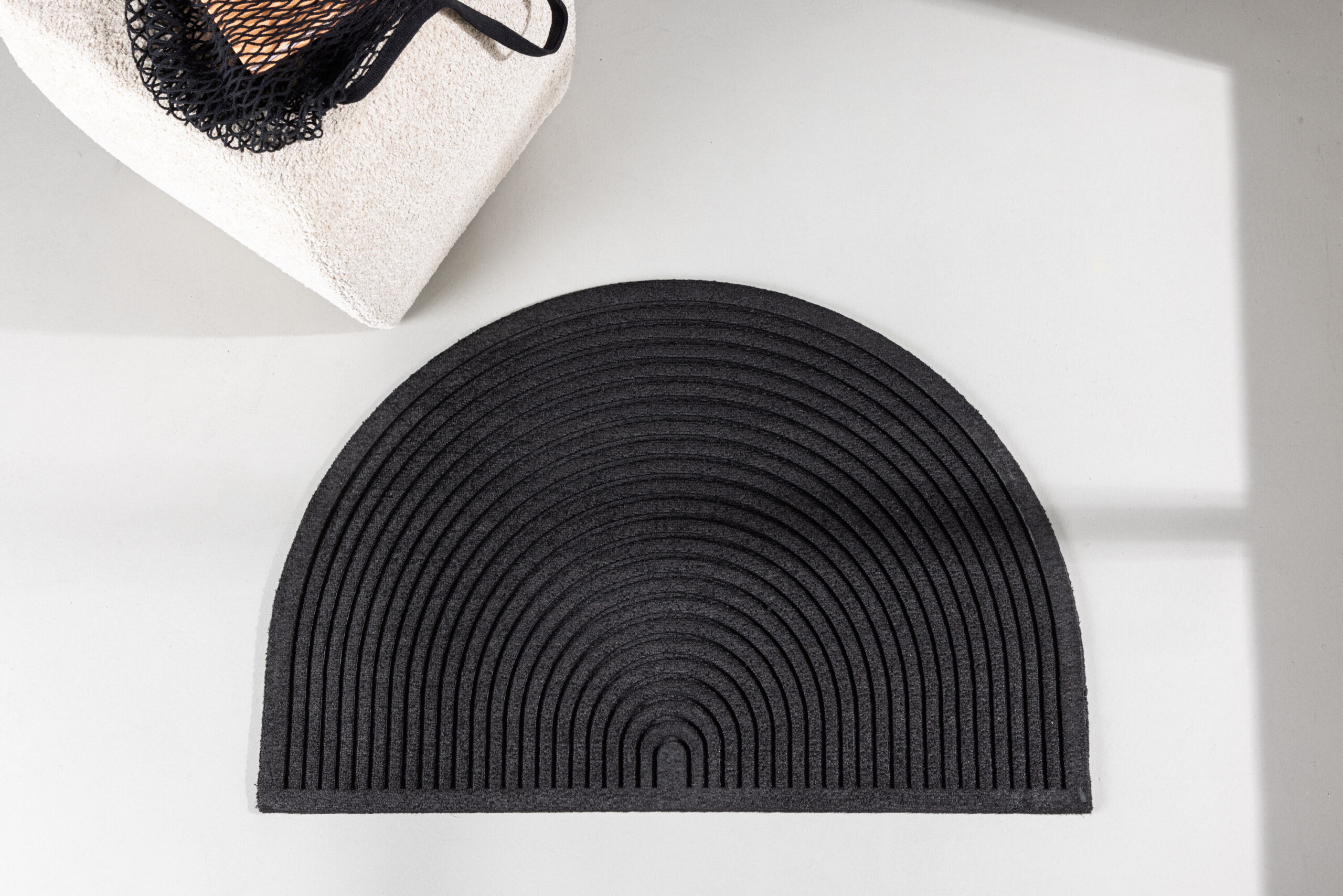 Teodor-mattan har en unik halvmåneform som ger den en modern och intressant estetik. Dess strukturerade mönster skapar en visuell effekt och ger mattan ett extra skyddande lager med svarta detaljer.